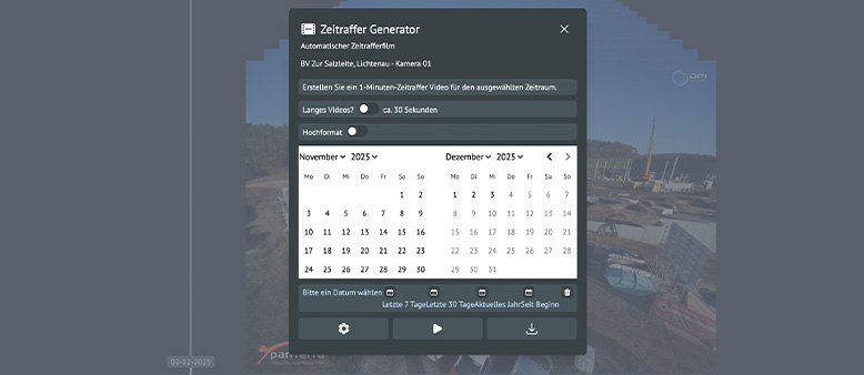 Das panTerra Online Portal ist Ihr zentraler Zugang zur TIME FACTORY – für Livebilder, Projekte und Zeitraffer. Je nach gebuchtem Paket nutzen Sie einen festen Projektzugang oder mehrere individuelle Nutzer-Logins.